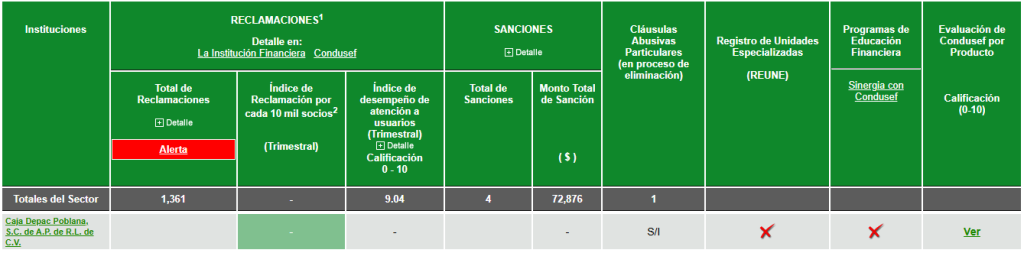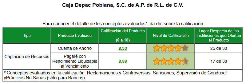 En el Buró de Entidades Financieras, podrás encontrar información detallada de CAJA DEPAC POBLANA, así como, de las demás entidades financieras, referente a: