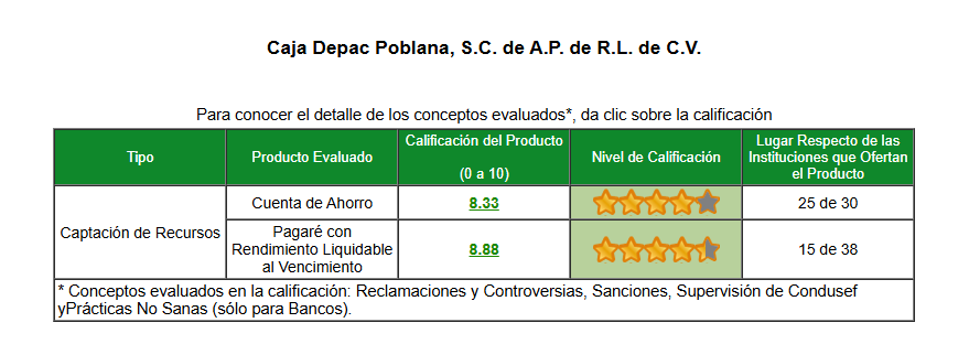En el Buró de Entidades Financieras, podrás encontrar información detallada de CAJA DEPAC POBLANA, así como, de las demás entidades financieras, referente a: